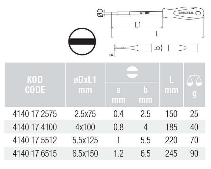 İZELTAŞ 4*100 Elektrikçi İzoleli Düz Tornavida 1000 Volt 4140 17 4100